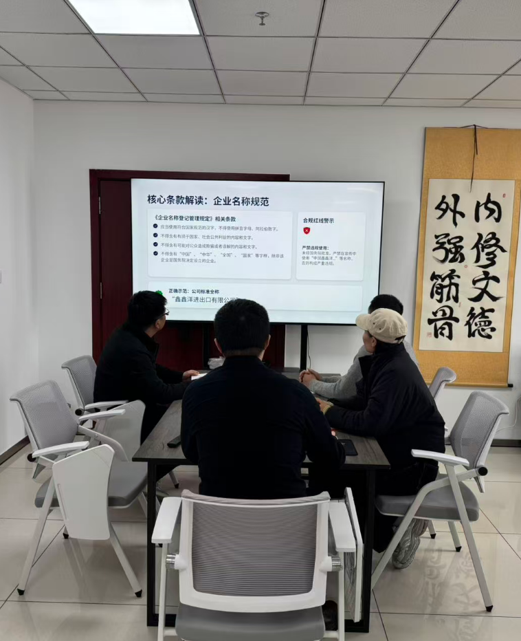 本次会议是鑫鑫洋进出口有限公司强化内部管理、提升合规经营水平的重要举措。公司将始终坚持“合规先行”的经营理念,以此次会议为契机,持续规范市场行为,维护企业良好形象,为公司的稳健发展提供坚实的法律保障。